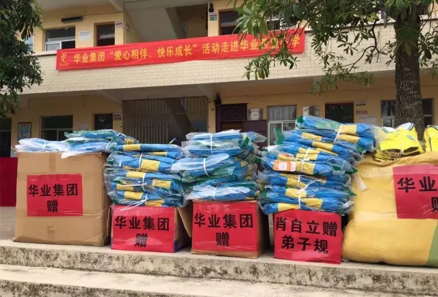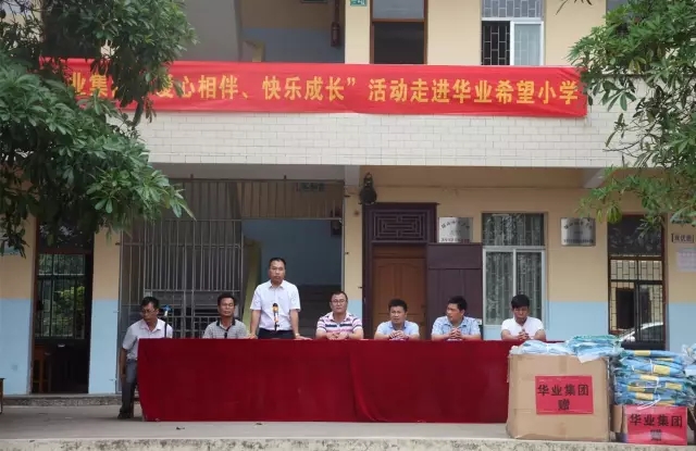 2017年5月25日上午,華業(yè)集團愛心相伴·快樂成長慰問活動在蓆草陂華業(yè)希望小學舉行,高橋鎮(zhèn)劉書記、舒鎮(zhèn)長、陳主任等領(lǐng)導以及廣西華業(yè)投資集團有限公司總裁龍其偉、董事長龍其生和集團高層領(lǐng)導參加了此次活動。華業(yè)集團帶著愛心走進華業(yè)希望小學,給師生們送去了書包、教科書籍和嶄新的校服,并給先進頒發(fā)了獎學金,鼓勵同學們向先進學習。