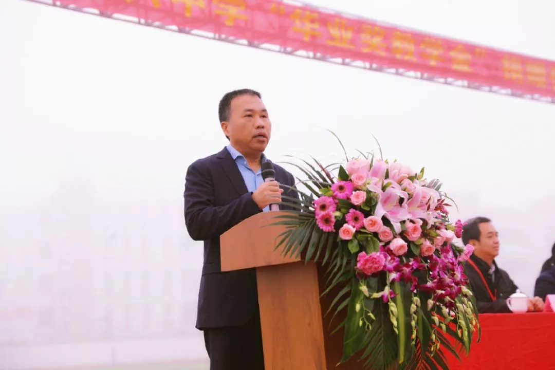 華業(yè)集團(tuán)總裁龍其偉在捐贈(zèng)儀式上發(fā)表講話(huà)