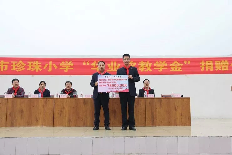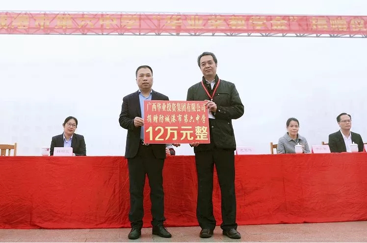 2018年12月26日上午,防城港市第六中學(xué)、防城港市珍珠小學(xué)先后隆重舉行“華業(yè)獎(jiǎng)教學(xué)金”捐贈(zèng)儀式,廣西華業(yè)投資集團(tuán)分別向防城港市第六中學(xué)捐資120000元、向防城港市珍珠小學(xué)捐資78900元設(shè)立“華業(yè)獎(jiǎng)教學(xué)金”。華業(yè)集團(tuán)龍其偉總裁、工會(huì)鐘麗霞主席共同出席了兩校舉行的捐贈(zèng)儀式。