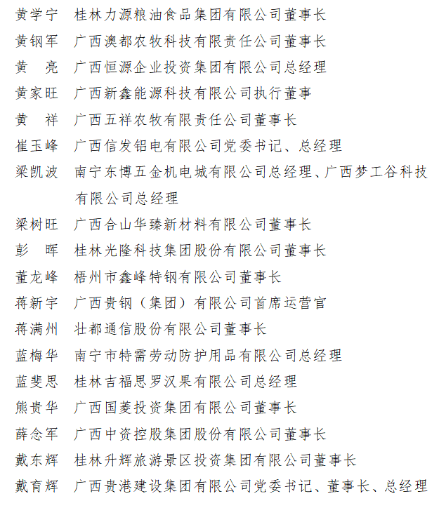 為進一步激勵廣大民營企業(yè)家堅定理想信念,不斷激發(fā)創(chuàng)業(yè)創(chuàng)新熱情,履行社會責(zé)任,助力鄉(xiāng)村振興,11月22日,自治區(qū)黨委統(tǒng)戰(zhàn)部、自治區(qū)工商聯(lián),廣西光彩事業(yè)促進會決定對黃東等2022年度98位優(yōu)秀民營企業(yè)家進行通報表揚。