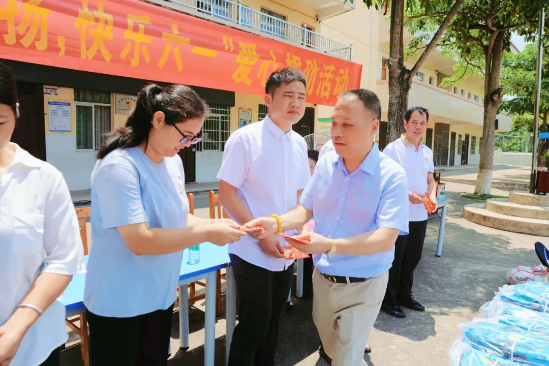 隨后,舉行了慰問(wèn)捐贈(zèng)儀式,龍其偉、龍其生和參加活動(dòng)的領(lǐng)導(dǎo)們?yōu)閷W(xué)校師生送上慰問(wèn)品及慰問(wèn)金,并捐贈(zèng)一批學(xué)習(xí)、教輔用品,提前祝賀孩子們“六一節(jié)”快樂(lè)、學(xué)習(xí)進(jìn)步!