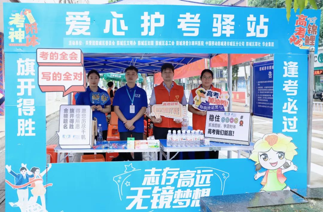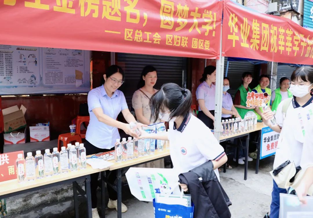 6月7日上午,華業(yè)集團(tuán)工會主席鐘麗霞率公司員工前往防城區(qū)各個考點布置愛心護(hù)考驛站,為考生及家長免費提供飲用水、紙巾、文具包、應(yīng)急藥品等為高考加油助力。