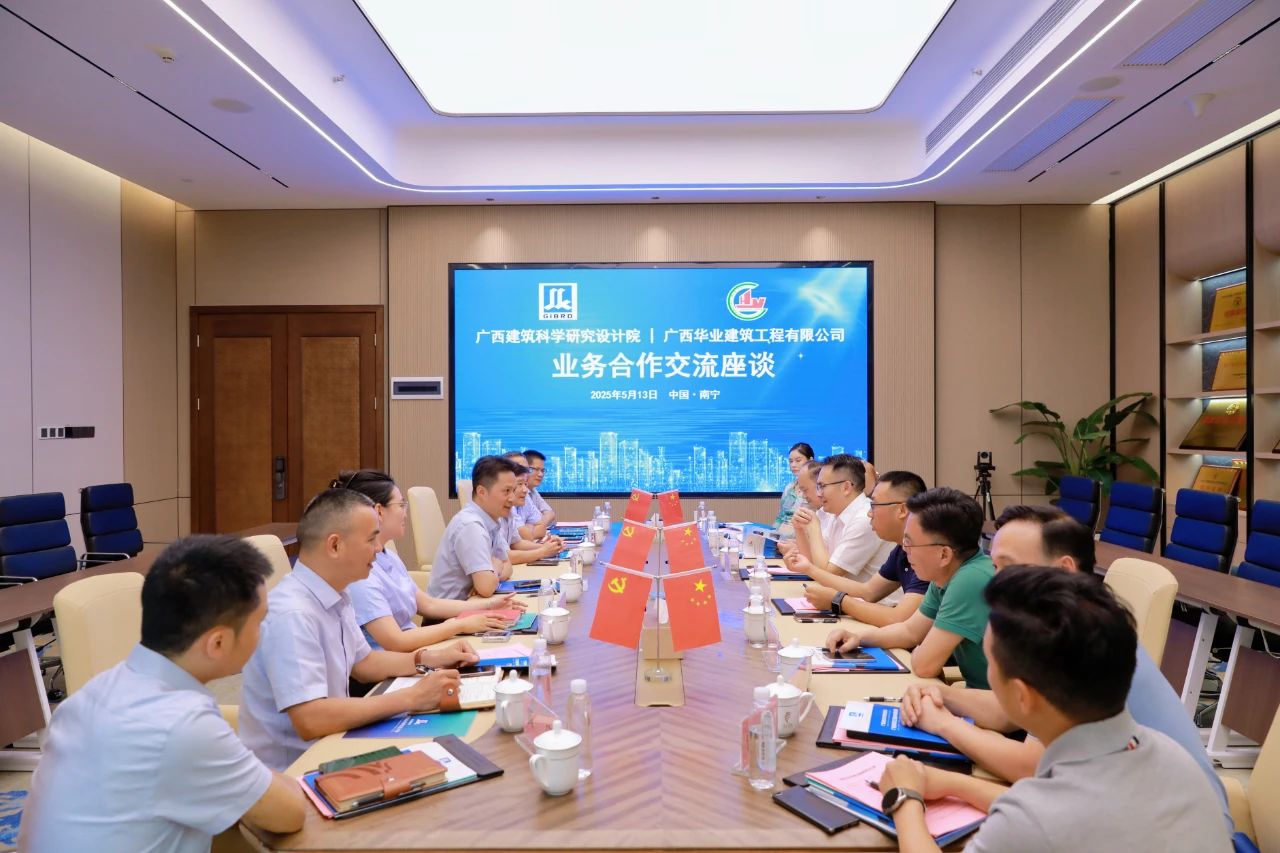 2025年5月13日下午,廣西壯族自治區(qū)建筑科學(xué)研究設(shè)計(jì)院(以下簡(jiǎn)稱(chēng)“廣西建科院”)與廣西華業(yè)建筑工程有限公司(以下簡(jiǎn)稱(chēng)“華業(yè)建筑”)在華業(yè)大廈舉行業(yè)務(wù)合作交流座談會(huì)。廣西建科院副院長(zhǎng)龐耀國(guó)、潘利,華業(yè)建筑總經(jīng)理龐樹(shù)玉等主要領(lǐng)導(dǎo)及核心業(yè)務(wù)負(fù)責(zé)人共15人出席會(huì)議,雙方圍繞建筑科研、工程檢測(cè)、設(shè)計(jì)施工、消防查驗(yàn)、項(xiàng)目投資等領(lǐng)域的深度合作展開(kāi)交流,共同擘畫(huà)合作發(fā)展新藍(lán)圖。