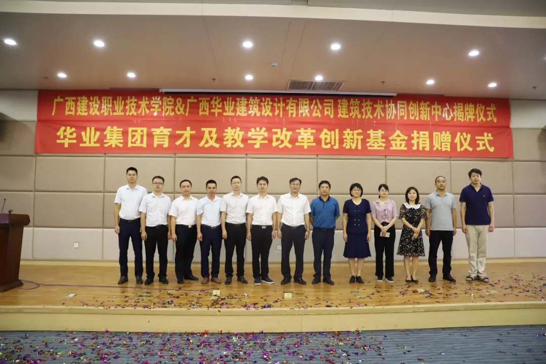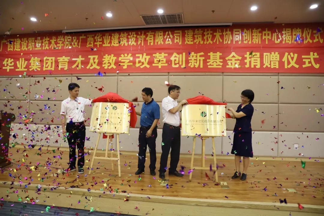 廣西華業(yè)投資集團(tuán)育才及教學(xué)改革創(chuàng)新基金捐贈(zèng)暨廣西建設(shè)職業(yè)技術(shù)學(xué)院&廣西華業(yè)建筑設(shè)計(jì)有限公司建筑技術(shù)協(xié)同創(chuàng)新中心揭牌儀式順利舉行