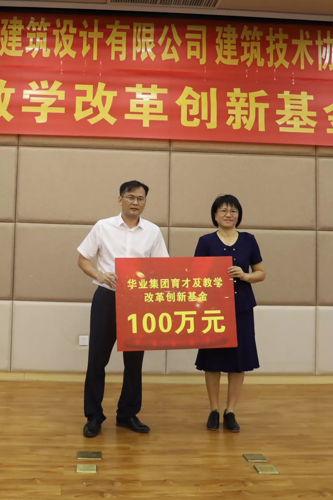 隨后,廖人興副總裁代表華業(yè)集團(tuán)向廣西建設(shè)職業(yè)技術(shù)學(xué)院捐贈(zèng)100萬(wàn)元人民幣設(shè)立華業(yè)集團(tuán)育才及教學(xué)改革創(chuàng)新基金,廣西建設(shè)職業(yè)技術(shù)學(xué)院土木工程系主任姚琦代表學(xué)院接受捐贈(zèng),并對(duì)華業(yè)集團(tuán)慷慨解囊表示衷心感謝。華業(yè)集團(tuán)育才及教學(xué)改革創(chuàng)新基金的設(shè)立,充分體現(xiàn)了華業(yè)集團(tuán)對(duì)深入開展校企合作、精準(zhǔn)落實(shí)教育教學(xué)改革、培養(yǎng)專業(yè)型人才的堅(jiān)定決心和信心。