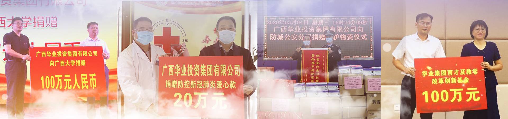 華業(yè)集團(tuán)以履行社會責(zé)任為己任的理念贏得了社會各界的肯定,先后獲得“自治區(qū)統(tǒng)戰(zhàn)部2020年‘抗疫先進(jìn)單位’”“2019年廣西‘萬企幫萬村’精準(zhǔn)扶貧行動‘先進(jìn)民營企業(yè)’”“廣西統(tǒng)一戰(zhàn)線脫貧攻堅(jiān)先進(jìn)單位”“紅十字天使計(jì)劃博愛救心八桂行愛心單位”“支持共青團(tuán)工作先進(jìn)單位”“情系家鄉(xiāng)教育”“模范職工之家”“防城港市愛心企業(yè)”“防城港市社會公益慈善事業(yè)突出貢獻(xiàn)單位”等榮譽(yù)稱號。