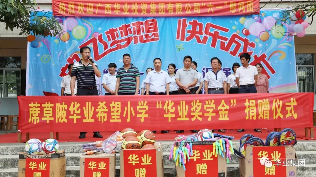 2019年5月30日,蓆草陂華業(yè)希望小學(xué)“華業(yè)獎(jiǎng)教學(xué)金”捐贈(zèng)儀式隆重舉行,華業(yè)集團(tuán)總裁龍其偉、工會(huì)主席鐘麗霞等華業(yè)集團(tuán)員工參加了捐贈(zèng)儀式,并給希望小學(xué)贈(zèng)送了學(xué)習(xí)用品、體育用品等物資。高橋鎮(zhèn)鎮(zhèn)長(zhǎng)舒金、華業(yè)希望小學(xué)校長(zhǎng)林家海等當(dāng)?shù)仡I(lǐng)導(dǎo)對(duì)華業(yè)集團(tuán)表示了熱烈的歡迎。