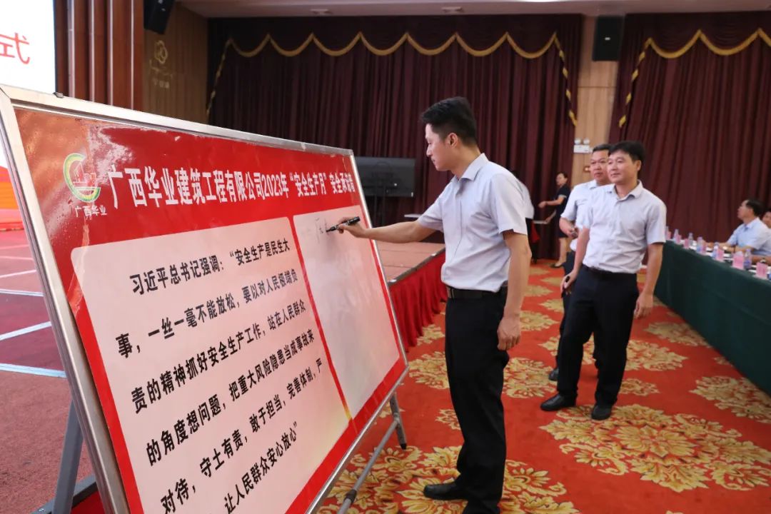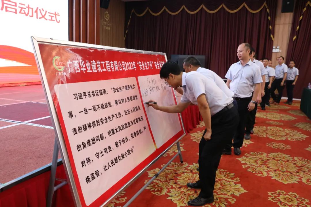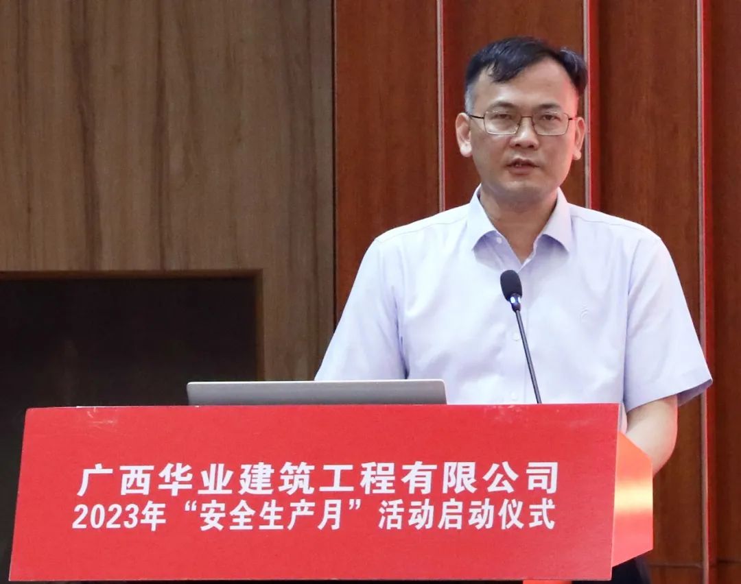 建筑公司董事長廖人興出席并宣布2023年華業(yè)建筑公司“安全生產(chǎn)月”活動正式啟動,總經(jīng)理龐樹玉、副總經(jīng)理韓軍、總工程師顏傳富出席活動,會議由生產(chǎn)副總經(jīng)理朱佰平主持。