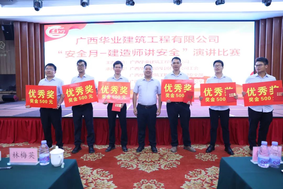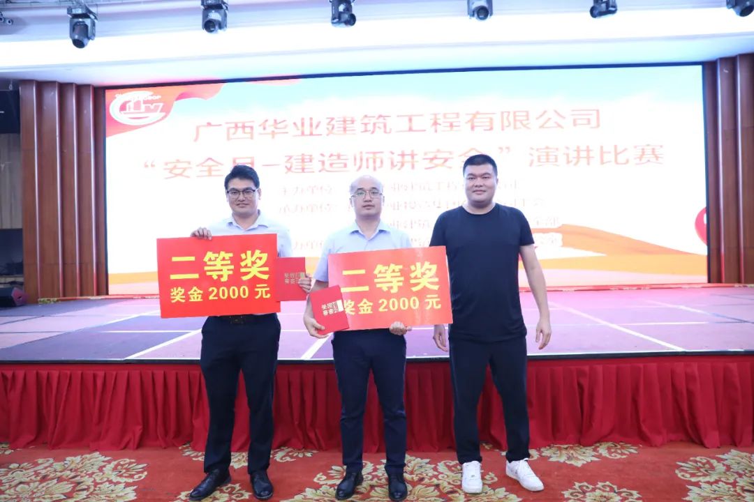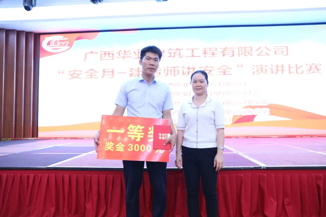 廣西華業(yè)建筑工程有限公司生產(chǎn)副總經(jīng)理朱佰平為獲獎選手頒發(fā)優(yōu)秀獎